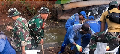 Dalam rangka mencegah terjadinya banjir, mencegah penyebaran penyakit dan menjaga kebersihan lingkungan, Babinsa Kelurahan Lubang Buaya berkolaborasi bersama petugas Dinas Tata Air gotong royong membersihkan saluran air agar tidak menjadi sarang nyamuk.