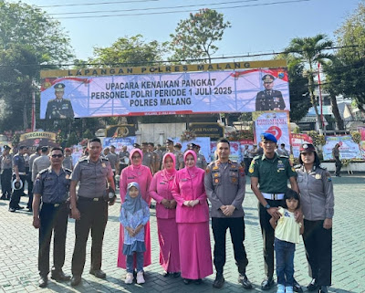 Malang – Sebanyak 73 anggota Polres Malang, Polda Jawa Timur, resmi mendapatkan kenaikan pangkat dalam upacara yang digelar di halaman Mapolres Malang, Rabu (2/7/2025) pagi. Kegiatan ini menjadi bagian dari rangkaian peringatan Hari Bhayangkara ke-79.